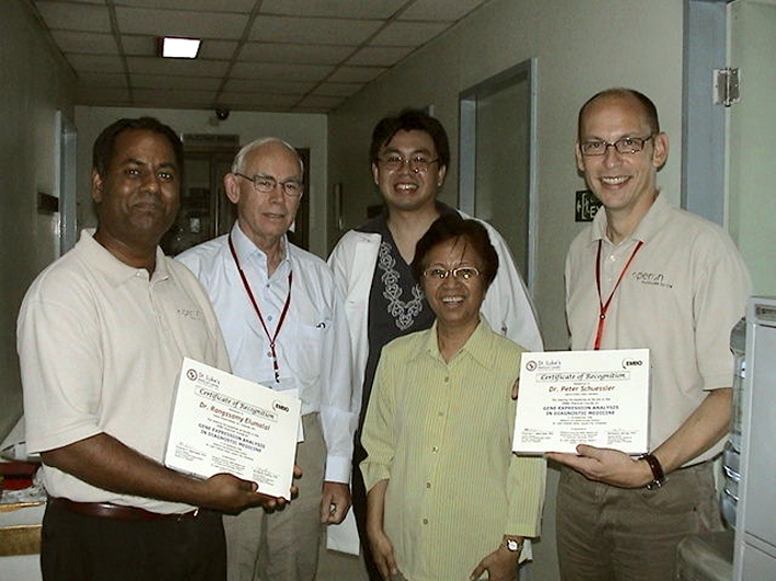 Dr. Jens Stolte, EMBL Heidelberg; Dr. Peter Schuessler, Hilden; Dr. Christian Rohrer, Kuala Lumpur; Peter Serocka, Shanghai; Dr. Rangasami Elumalai,Huntsville; Dr. Valerio Orlando, Napoli; Dr. Wolfgang Hennig, Shanghai